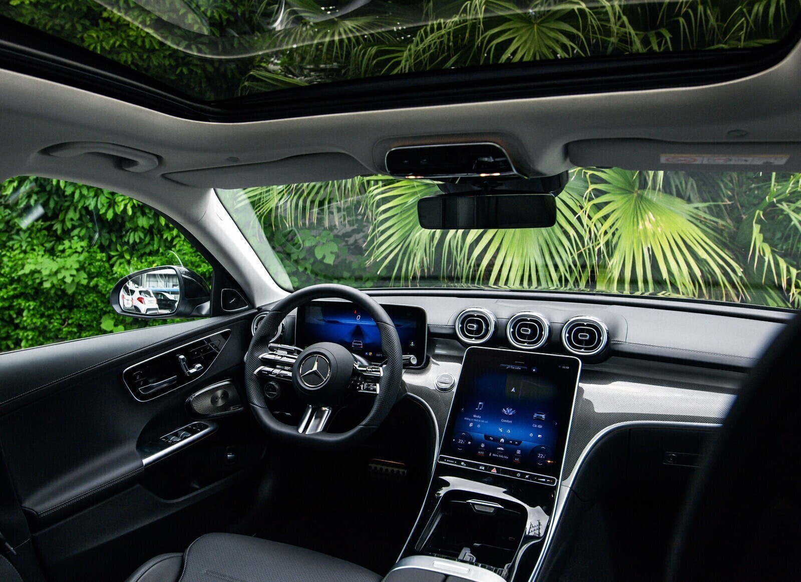 Mercedes-Benz C 300 AMG sử dụng hệ thống loa Burmester gồm 15 loa, hứa hẹn mang lại những trải nghiệm âm thanh đặc sắc chưa từng có. Ngoài ra không thể thiếu những trang bị tiện nghi như: điều hoà tự động 2 vùng THERMATIC, sạc không dây, đèn viền nội thất 64 màu, màn che nắng kính sau bên hông, màn che nắng kính sau chỉnh điện, ốp bệ cửa logo, thảm lót sàn AMG, cửa sổ trời Panoramic, mở cộp rảnh tay HANDS-FREE ACCESS…